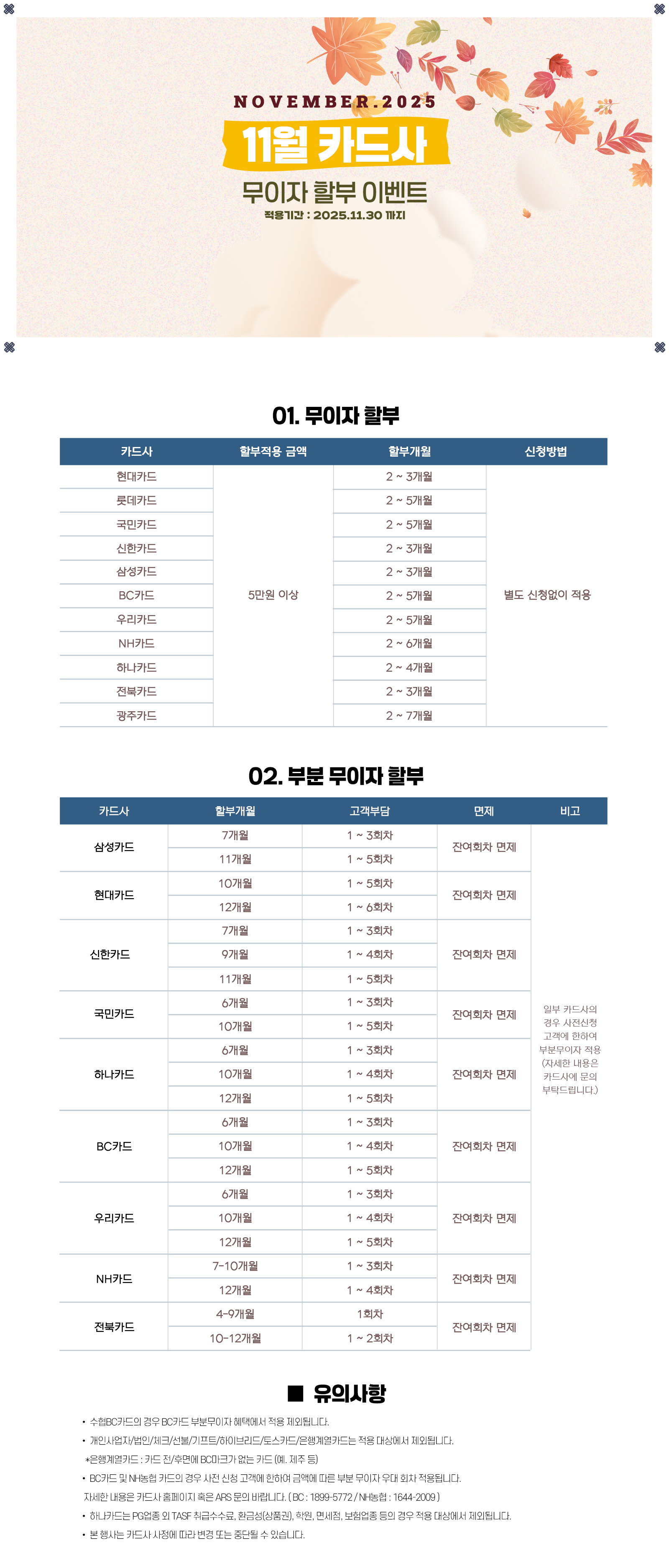 무이자할부 2025년 11월 이벤트 안내