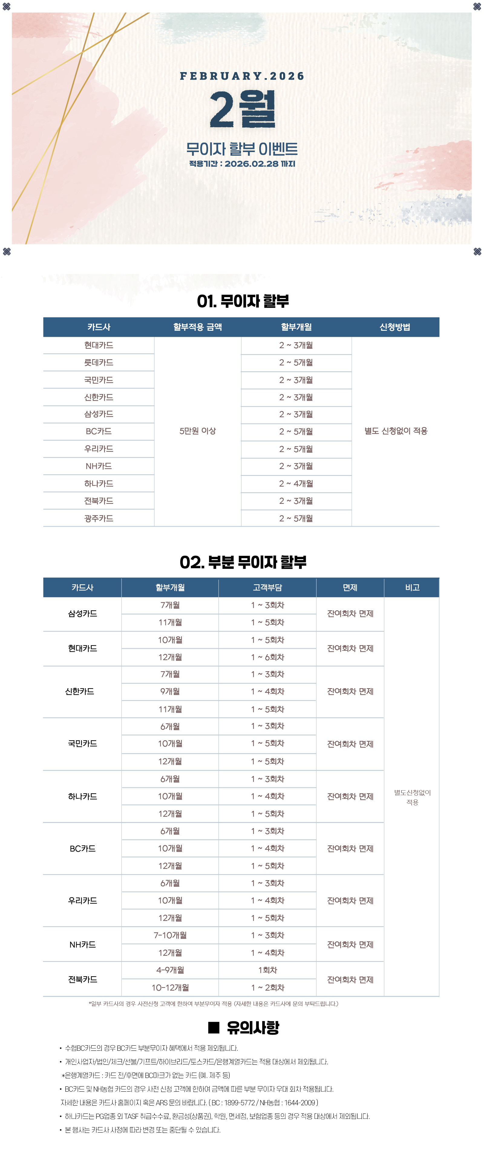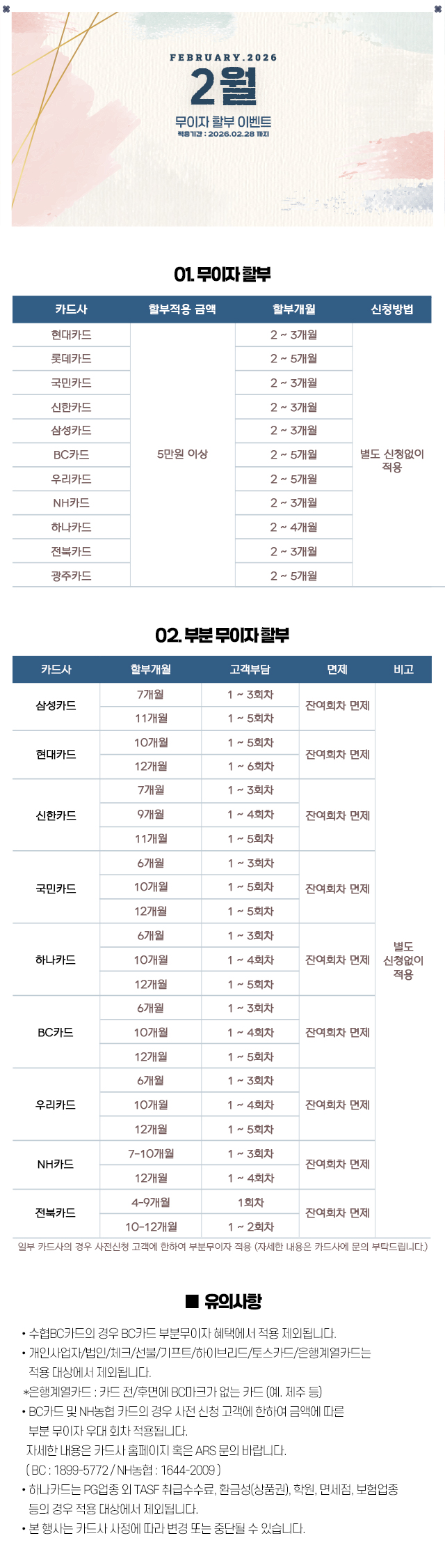 무이자할부 2026년 2월 이벤트 안내