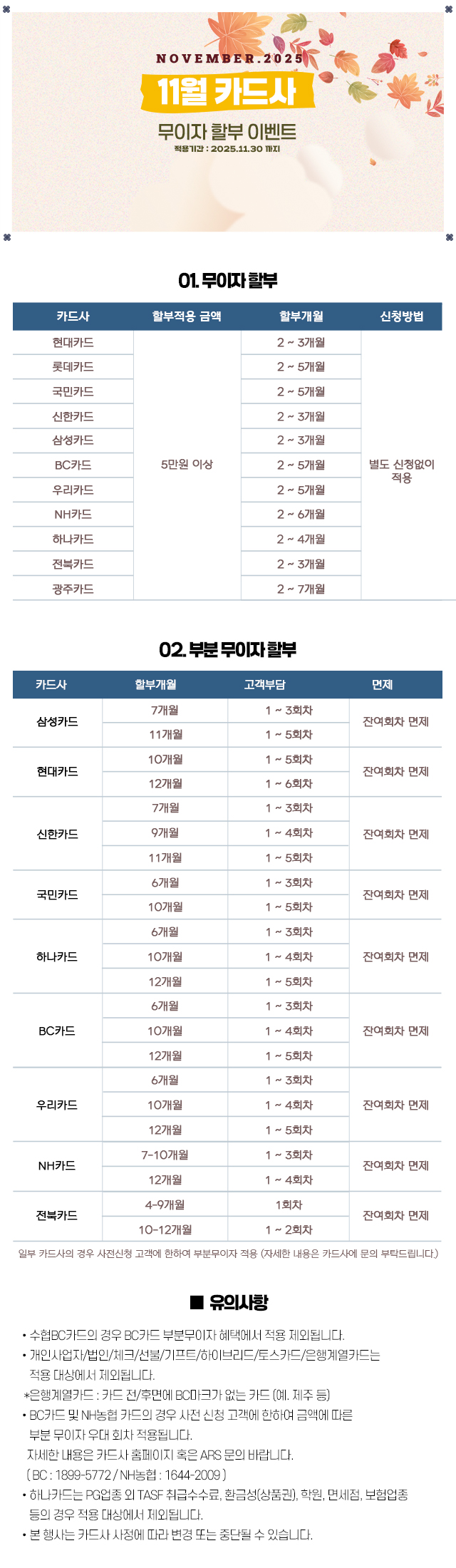 무이자할부 2025년 11월 이벤트 안내